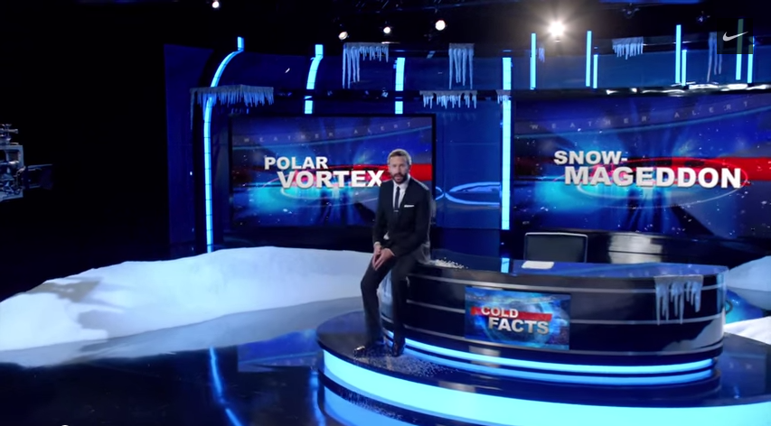 Clint Dempsey and Brad Evans, distance runner Mary Cain, figure skater Gracie Gold, snowboarder Johnnie Paxson and actor Chris O’Dowd as a weatherman.